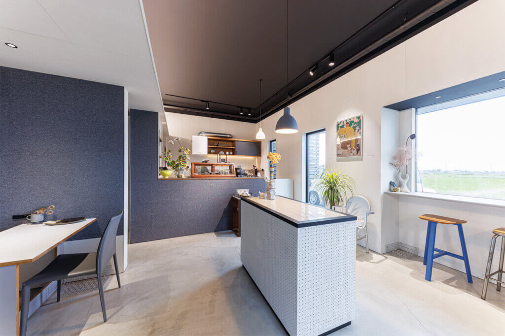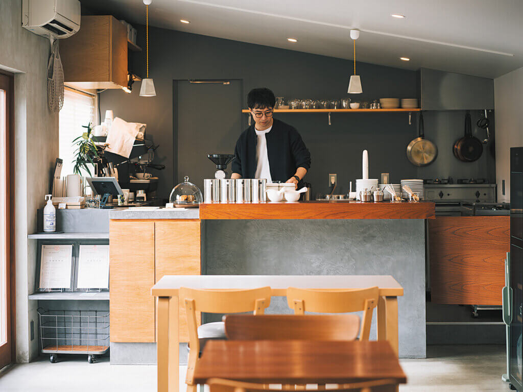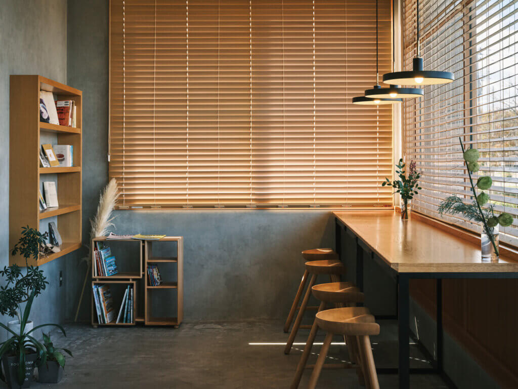 三条市の「高山電気」に隣接する複合施設「MEETS STUDIO」内のカフェ。「出会いが織り成す、気取らない普遍的な場所でありたい」という思いから作り上げた、洗練されながらもどこか遊び心がある店内は、不思議と居心地が良い。