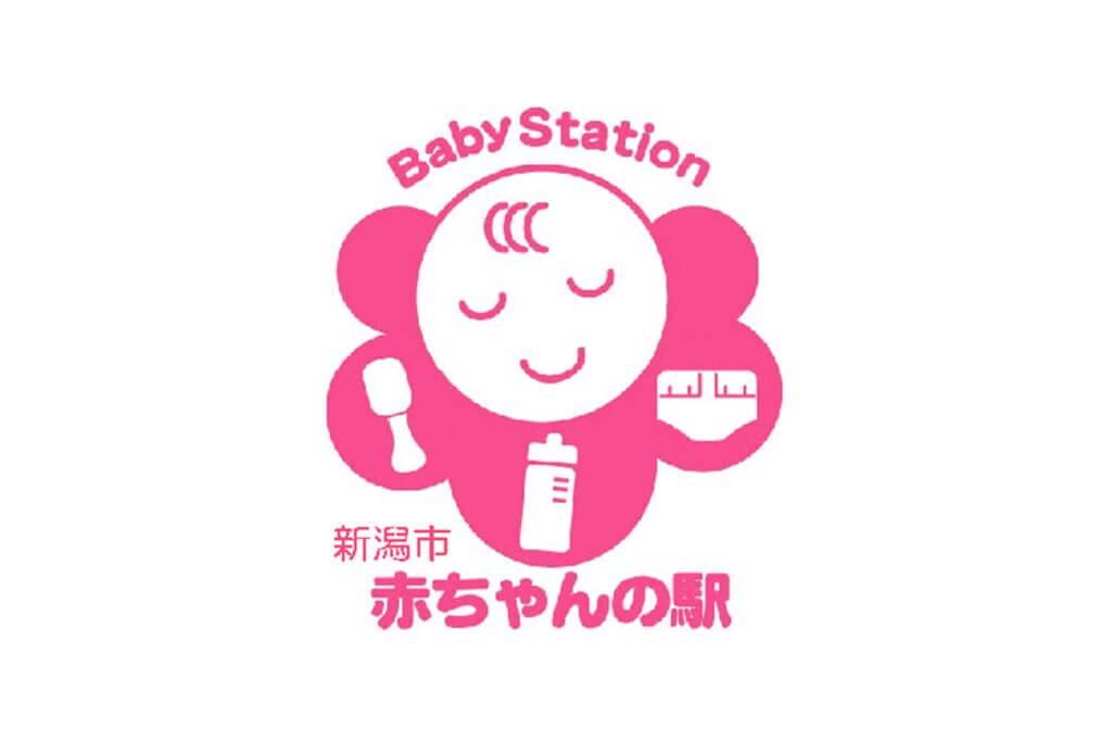 「新潟市赤ちゃんの駅」は、乳幼児を抱える保護者が外出先で気軽におむつ交換や授乳搾乳等ができる設備を用意している施設の愛称。登録されている施設の入口に掲示されているシンボルマークが目印です。